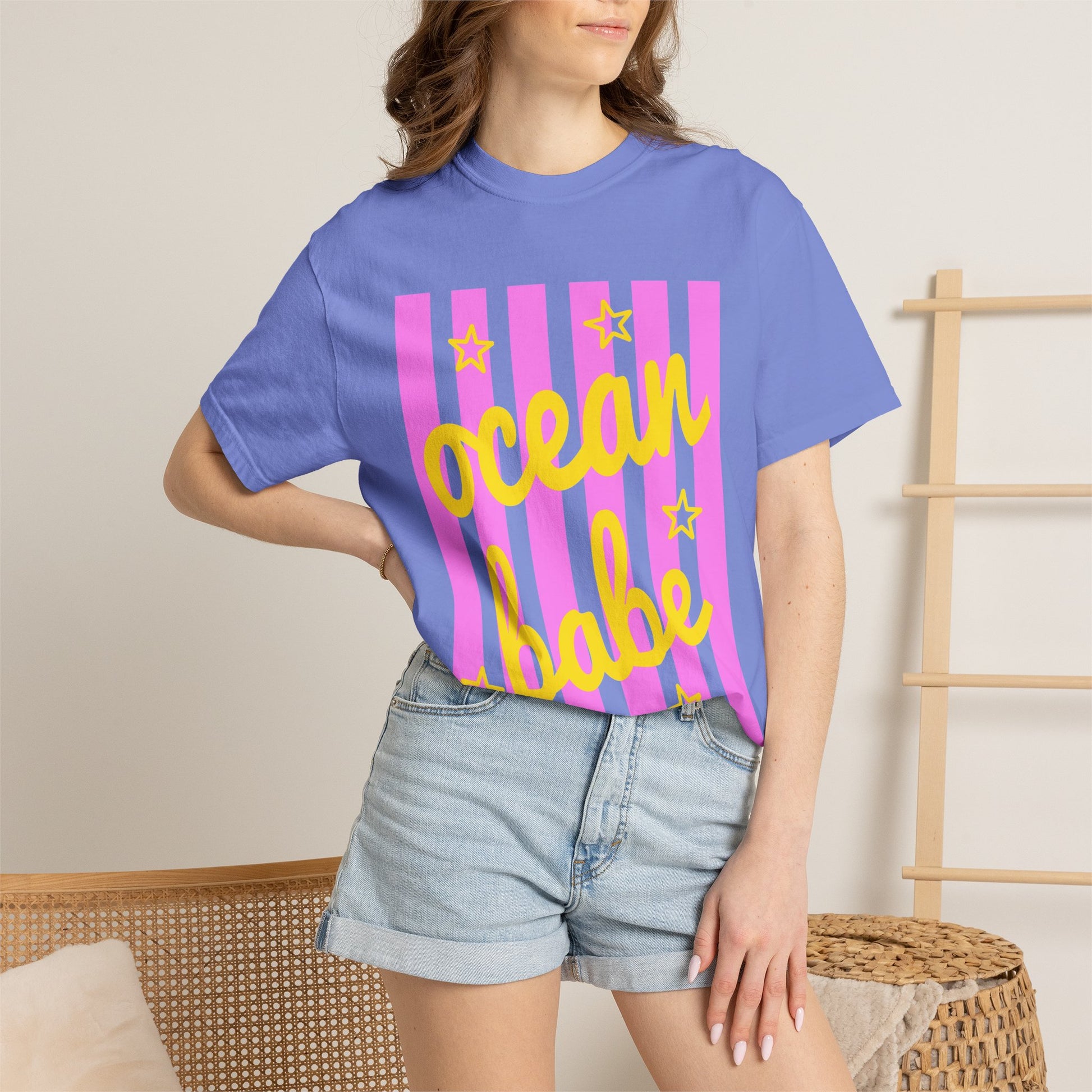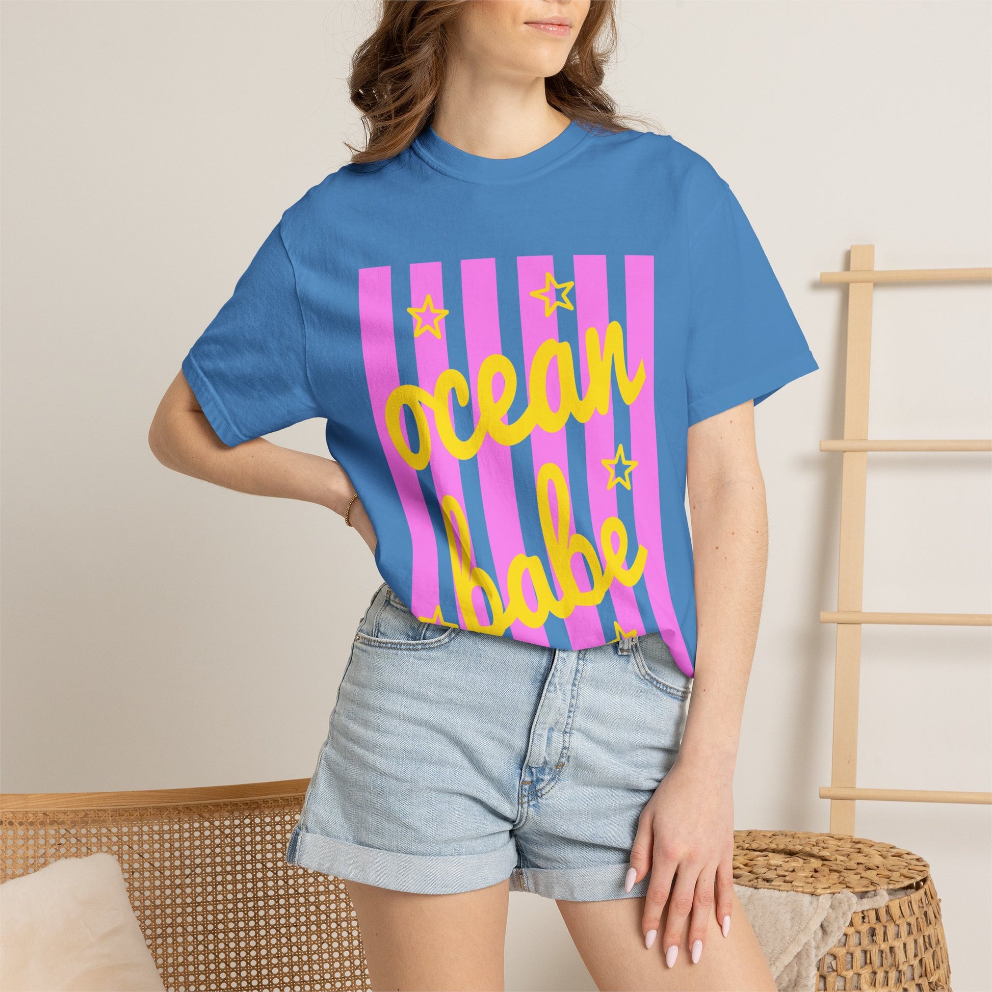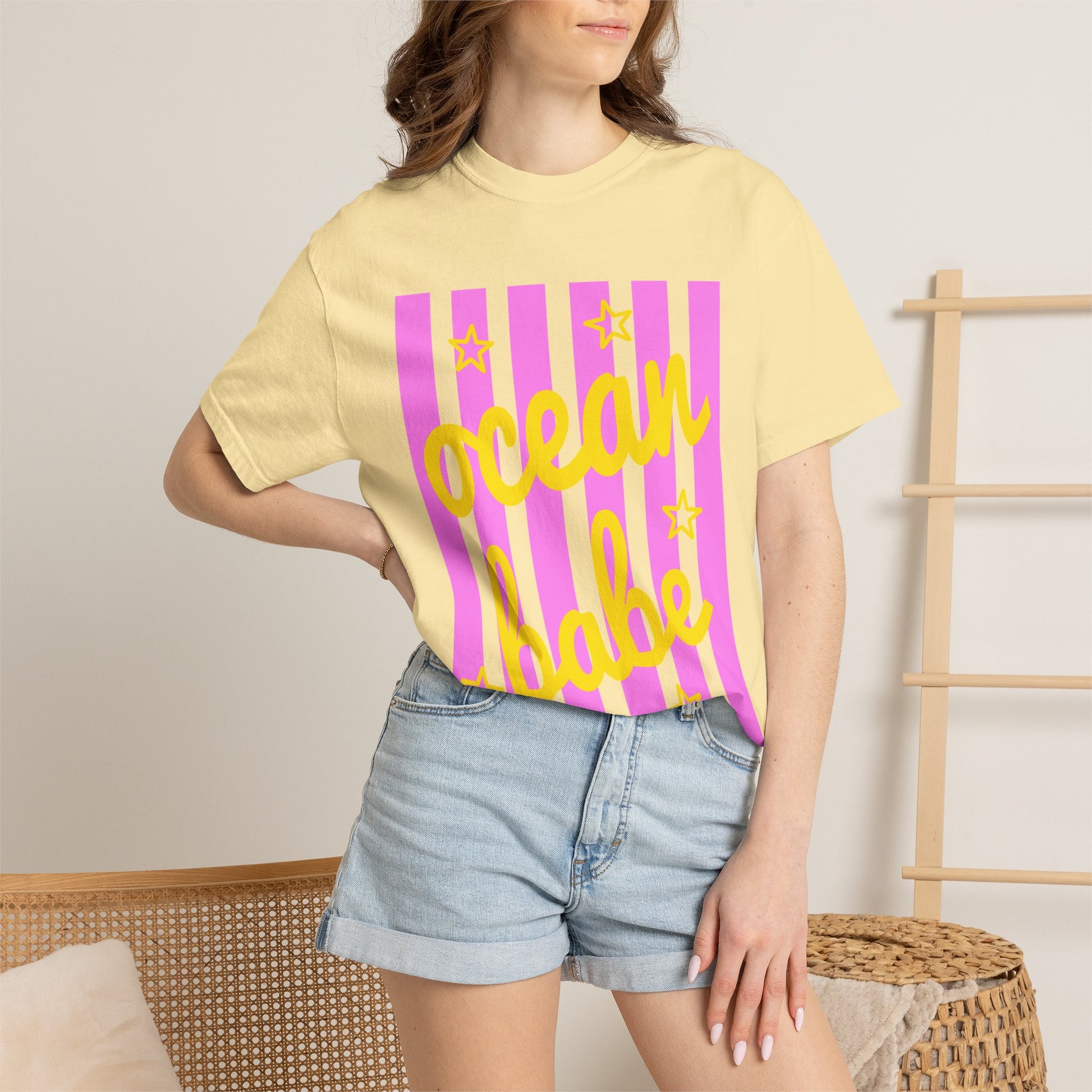 Ocean Babe Graphic T-Shirt — Pink Stripe Beach Tee